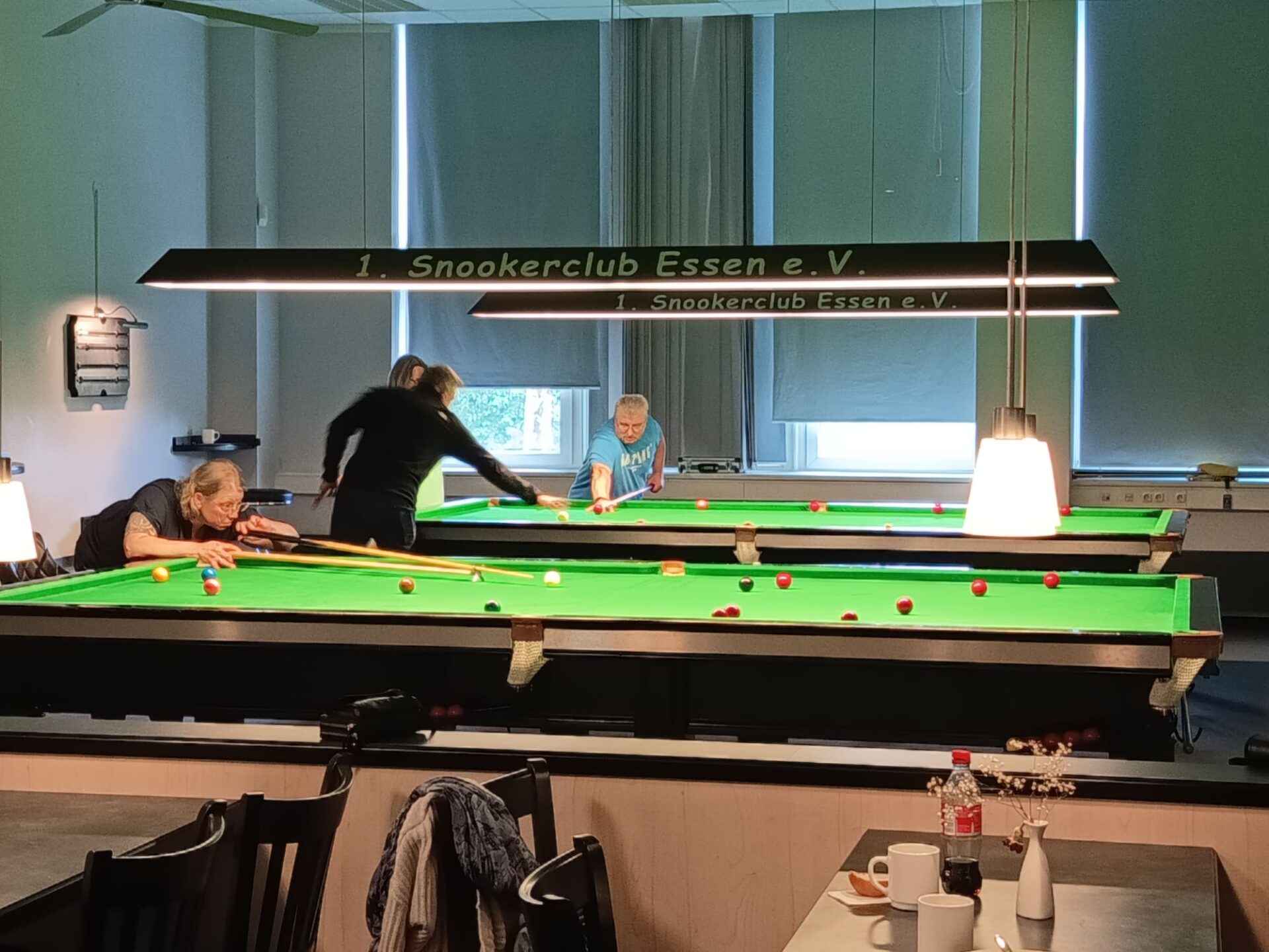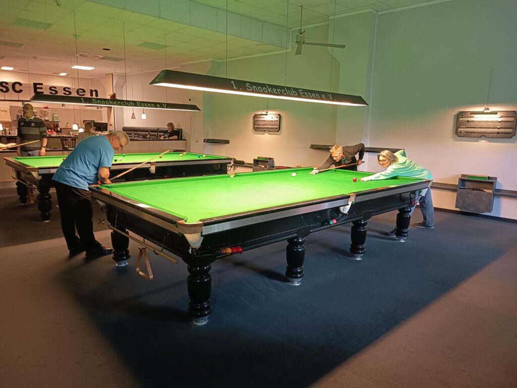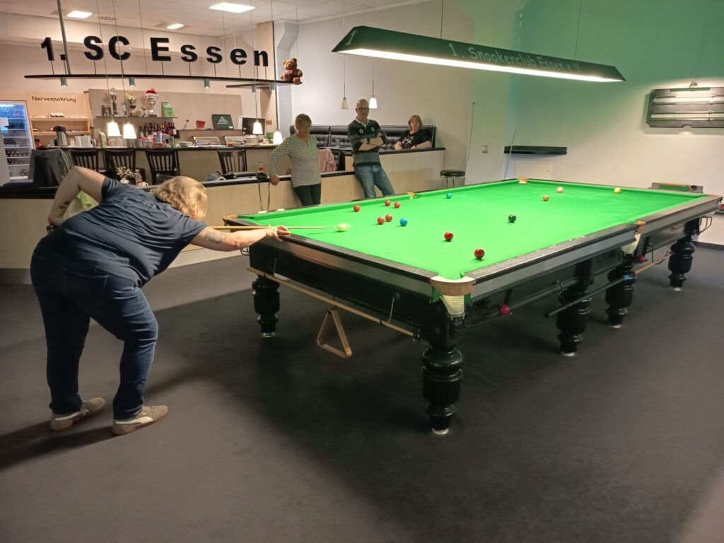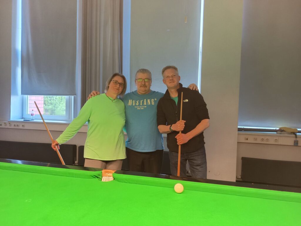 7 Snooker- Interessierte Damen und Herren trudelten gegen 11 Uhr ein, um sich von Mirko, Alf, Udo und Melly das Snookerspiel näherbringen zu lassen und nicht zuletzt auch selbst das Queue zu nutzen.